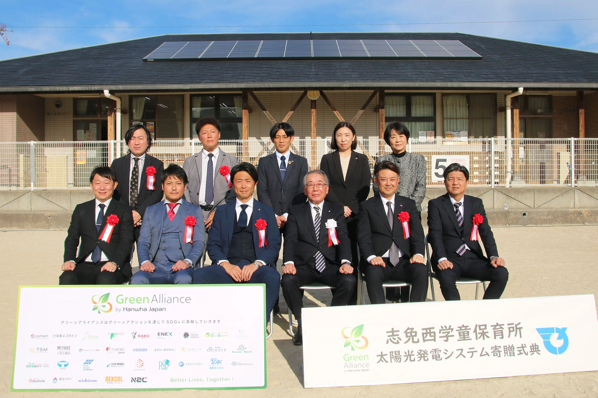福岡県粕屋郡志免町に位置する「志免西学童保育所」に太陽光発電システム6.4kW相当と蓄電池6.5kWhの寄贈および設置を行いました。停電時においても電力が確保できることから防災対策の強化につながるだけでなく、年間約2.9tのCO2を削減し、地球環境の保全に貢献します。