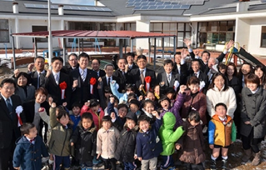 2011年に発生した未曾有の東日本大震災において岩手県種市幼稚園に12kW規模の太陽光発電設備を設置し、中断していた電力供給の復旧をサポートしました。