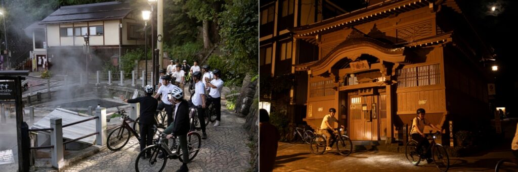 温泉街を舞台に、e-Bikeの試乗も