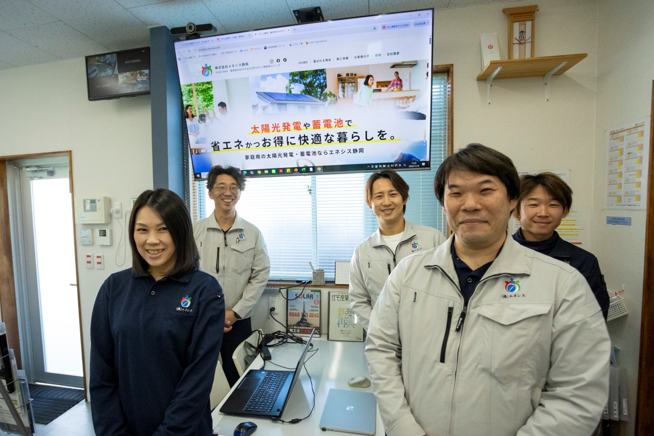静岡県浜松市に拠点を置くエネシス静岡。太陽光発電システムや蓄電池の販売・施工をはじめ、電気設備工事、住宅リフォームなど、住宅設備全般を取り扱っており、静岡県内を中心に近隣県まで、幅広く事業を展開しています。