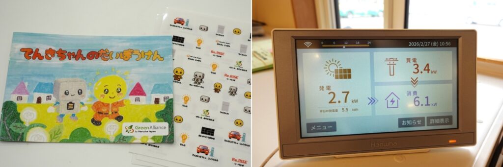 そして今回も、園児一人ひとりにグリーンアライアンスオリジナルの環境教育教材が贈られました。再生紙を使用した絵本は、太陽光発電の仕組みを物語形式で伝える一冊。登場するキャラクターに気持ちを重ねながら、やさしく理解できる内容となっています。